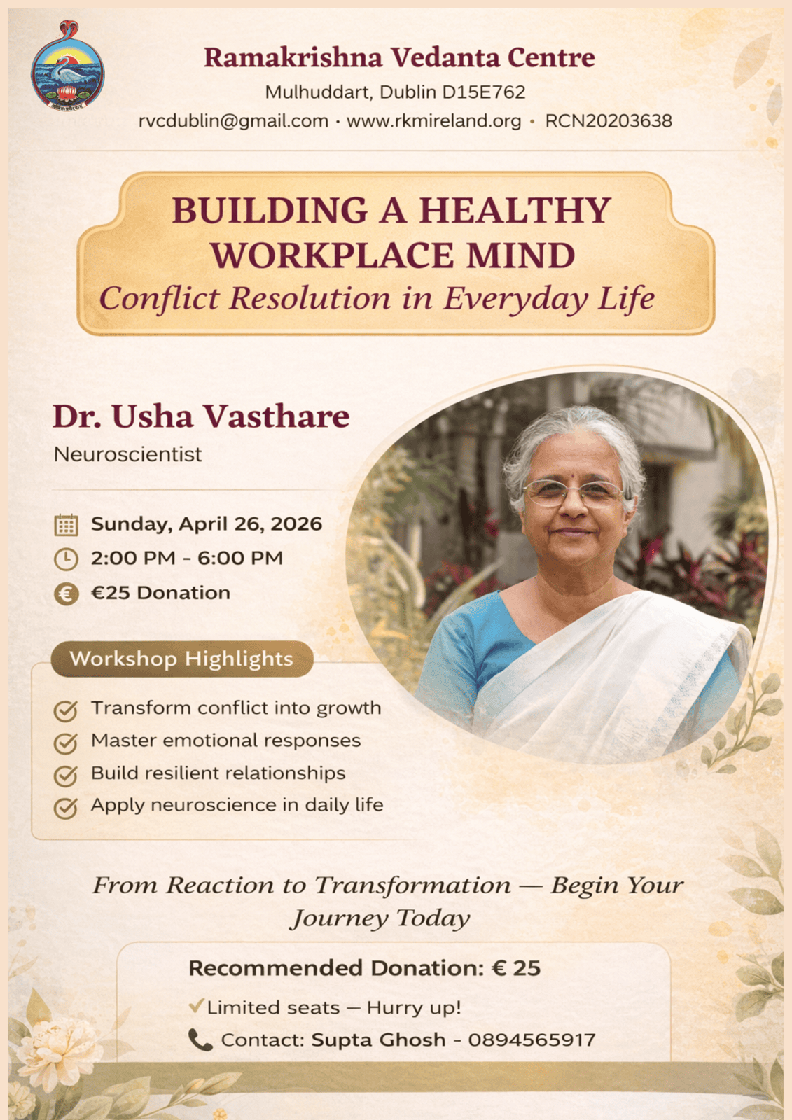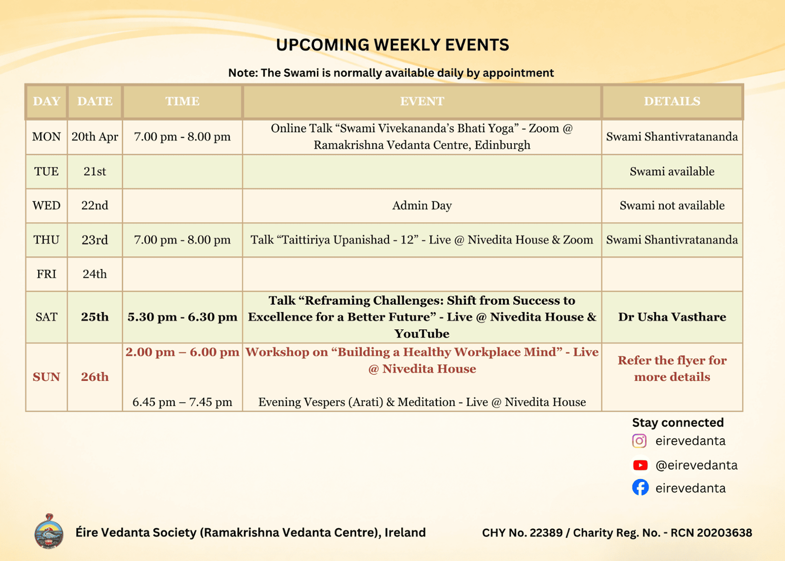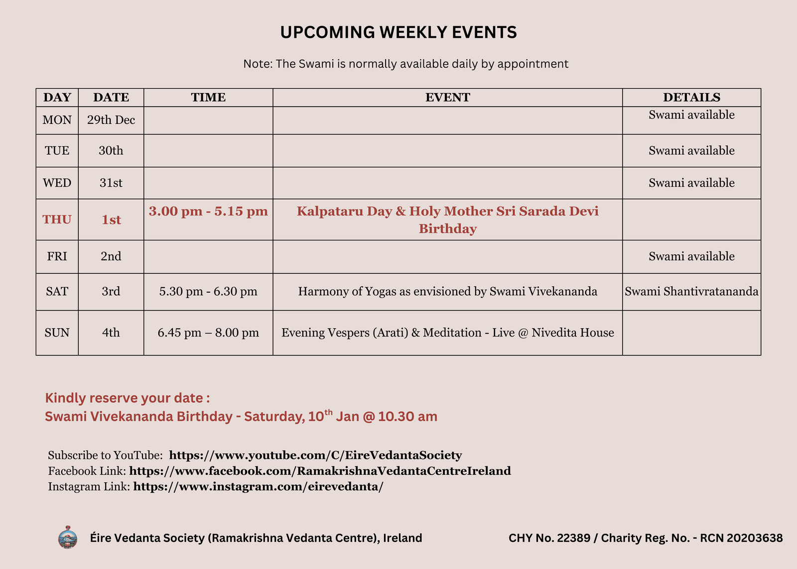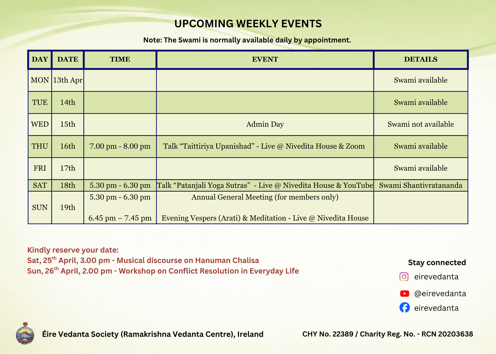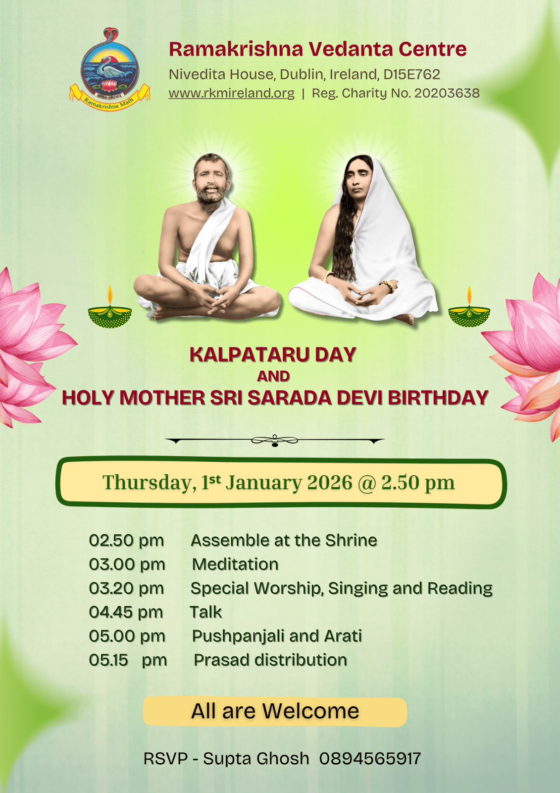 The Ramakrishna Vedanta Centre is a non-profit organisation wholly supported by the generous