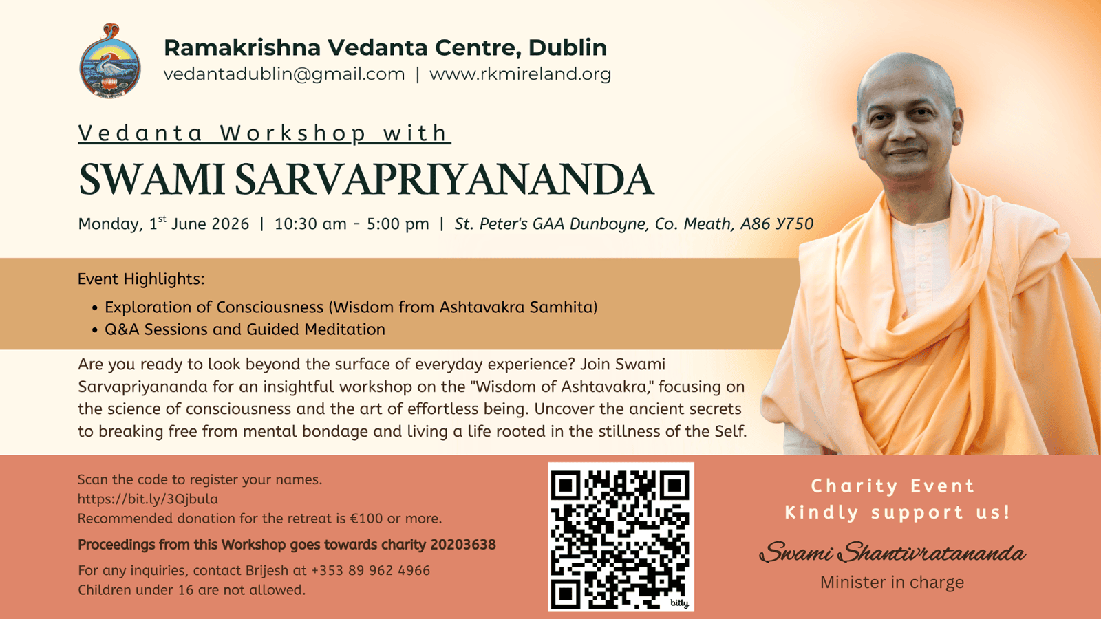 I met the Revered Swami Punananda (who is now my spiritual teacher) who was more than willing to answer some of my questions. The more questions he answered, the more that arose in my mind but the ever patient and most loving Swami Punananda is still, to this day, addressing the philosophical enquiries of his congregation. This journey has led me to participate in some of the most invaluable courses which are led by Swamiji at the Ashram in Mulhuddart, Dublin. We recently completed a two-day meditation course, which has opened a whole new spectrum of life, allowing me to concentrate on the real Self within and freedom from the bondage of mind. Life has changed so much for me as I detach more and more daily from desire for worldly possessions and attach more and more to that Self, which is in all beings.